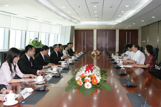 On the morning of the 11th September, President Huang Tianwen met with the delegation led by Mr. Yu Shicheng, President of Shanghai Maritime University SMU in Sinosteel headquarter.Firstly President Huang Tianwen warmly welcomed President Yu Shicheng and his group, and then introduced Sinosteel’ s developing historic, company orientation, development strategic, five industries, strategic cooperation, developing goals and so on. President Huang said SMU is devoted to fostering qualified talents for shipping industry. Sinosteel Shipping & Forwarding Co has recruited lots of staffs from SMU; now they are all professionists and contribute their strength to the development of Sinosteel. He also hope SMU will transfer more qualified talents for Sinosteel; and further promote its developing grandness.