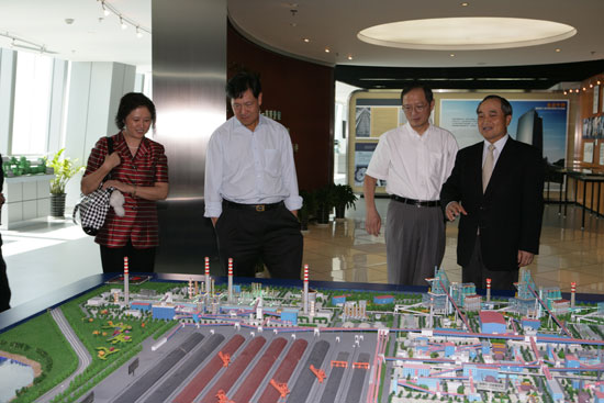 Before the meeting, accompanied by President Huang, President Yu Shicheng and his group visited Sinosteel exhibition room.