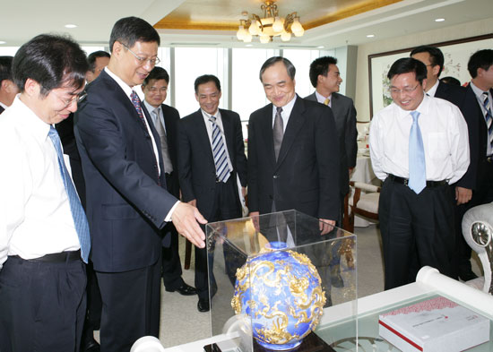 Accompanied by President Huang Tianwen, Vice President Jiang Hong, President Li and his Group Visiting Sinosteel Exhibition Room