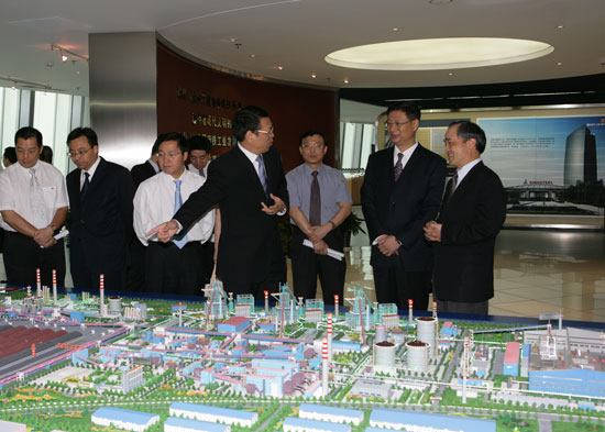 Before the meeting, accompanied by President Huang Tianwen, Vice President Jiang Hong, President Li and his group visited Sinosteel exhibition room.