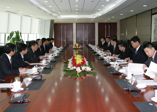 On the morning of the 11th September, President Huang Tianwen met with Vice President of The Export-Import Bank of China Zhu Hongjie and his delegation. Both parties deepen exchanged views on the issues of strengthen mutual cooperation.On behalf of Sinosteel, President Huang Tianwen warmly welcomed to Vice President Zhu Hongjie and expressed his sincere gratitude to the support and help from China Eximbank for all these years. He introduced Sinosteel’ s historic evolution, strategic orientation, five industries, strategic cooperation, performance in recent years, developing goals and so on. He said under the national macro-economic environment goes better; Sinosteel has made steady and rapid development, with optimistic prospects it will face to the global steel industrial service. Sinosteel would like to keep friendly cooperation relationship with China Eximbank for a long time, and further consolidate extensive, develop all-round and deep cooperation between the two parties.