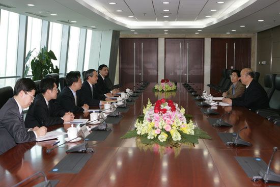 On the afternoon of April the 21st, president Huang Tianwen met with director Chen Yanhai, director of Ministry of Industry and Information Technology. President Huang warmly welcomed the guests and delivered sincere gratitude to them for providing guidance and supports. President Huang introduced Sinosteel to the guests and stated Sinosteel’s emphasis on scientific development and innovation.