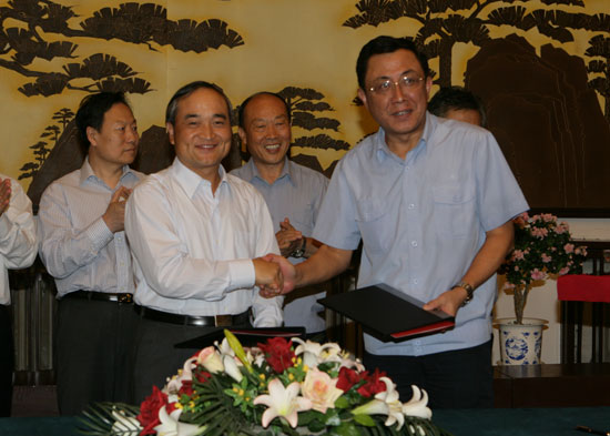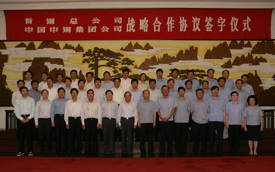 On the afternoon of the 10th September, Sinosteel Corporation and Shougang Group signed a strategic cooperation agreement in Shougang headquarter. Sinosteel President Huang Tianwen, Secretary of the Party Zhang Huanguang, Vice President Li Zhimin, Chief Accountant Liu Andong; Shougang Board Chairman Zhu Jimin, General Manager Wang Qinghai, Executive Vice General Manager Xu Yi, Vice General Manager Liu Shuiyang, Chief Accountant Fang Jianyi attended the signing ceremony. President Huang Tianwen and Board Chairman Zhu Jimin delivered addresses on the ceremony separately. Then, President Huang and GM Wang Qinghai signed on the agreement on behalf of each party.Sinosteel has kept cooperation relationship with Shougang for long standing. The two parties has kept stable business cooperation relationship on metallurgic raw materials & accessory materials, engineering contract, product sales, scientific and technological R & D and so on.