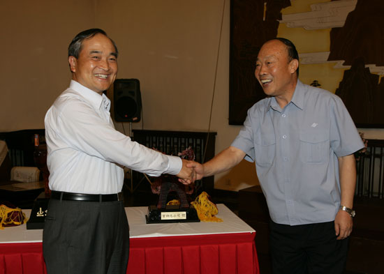 President Huang and Board Chairman Zhu Jimin Exchanging Gifts on Behalf of Each Party