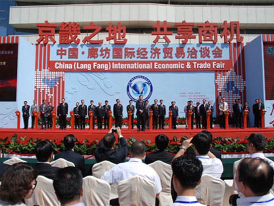In the morning of May 18th, 2009, China·Langfang International Economic and Trade Fair was held at Langfang International Convention and Exhibition Center, Sinosteel party secretary Zhang Hanguang was invited to attend the opening ceremony. Vice-Chairman of CPPCC, chairman of National Federation of Industry and Commerce Mr. Huang Mengfu, relevant state ministries, and leaders from six provinces around Bohai District attended the opening ceremony. The ceremony also attacked participants from more than 2000 central enterprise, World Top 500 enterprises, famous business institutions etc.