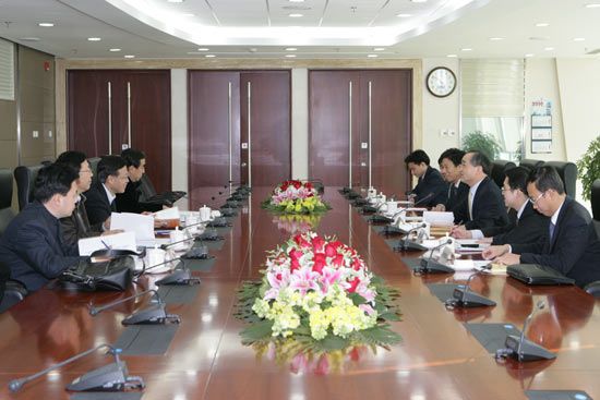 Jan. 14th, Mr. Ding Xuedong, vice minister of Ministry of Finance visited Sinosteel to give instructions. Chairman Huang met with the delegation led by Mr. Ding Xuedong at Sinosteel Headquarter.