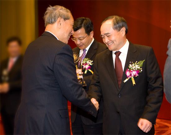 Dec. 20, Mr. Huang Tianwen, Chairman of Sinosteel Corporation Ltd. attended the award ceremony of “100 Personages in China Economy & Top 100 Chinese Brand” and “4th Social Responsibility Award”, which were part of the Election of Spectacular Economic Events for 60th Anniversaries of People’s Republic of China. Chairman Huang was titled Ten Economic Personages of the Year 2009.