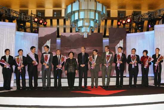Red Cross Society of China Chairman Peng Peiyun Taking a Group Photo with all Representatives of Award-Winning Enterprises