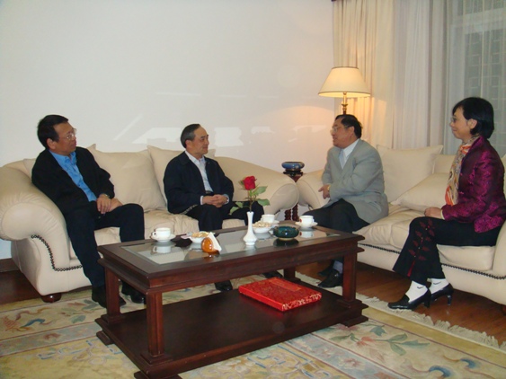 At the same day in the afternoon, President Huang and his group droved over 4 hours for went to Harare, the capital of Zimbabwe, and had an audience with Chinese Ambassador in Zimbabwe Yuan Nansheng.