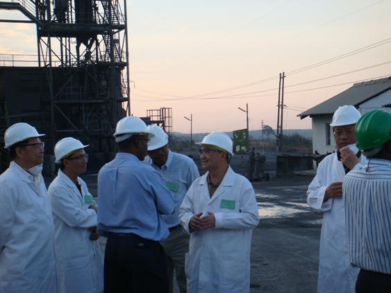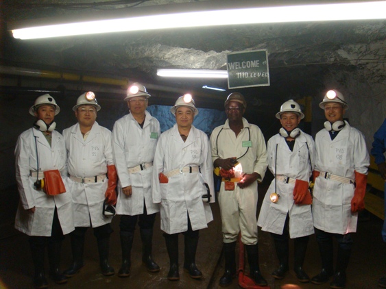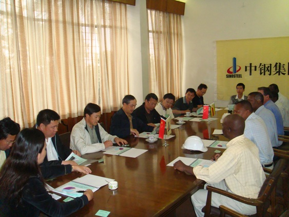 On 13th July 2008, after concluded all section activities in South Africa, President Huang Tianwen moved to Zimbabwe for paying an official visit. President Huang and his group arrived at the smelt mill of Zimasco Consolidated Enterprises Ltd., which situated at Kwekwe. He met with foreign high-level officers. On behalf of joint venture company, Mr. Sydwell Jena, CEO of Zimasco warmly welcomed President Huang Tianwen and his group and delivered a report on the successes and new progresses since Sinosteel took-over the smelt mill of Zimasco, on producing management, quality control, market sale, security and environment protection, technology training, staff stabilization and so on. After the meeting, accompanied by Chinese GM, foreign CEO and related management officers, inspected the smelt mill. At night, President Huang and his group had dinner with heads of related departments of Zimasco, which promoted the communication and understanding between each other.On the morning of 14th July, accompanied by CEO of Zimasco and Manager of the mine, President Huang went to the Peak mine and paid a visit.