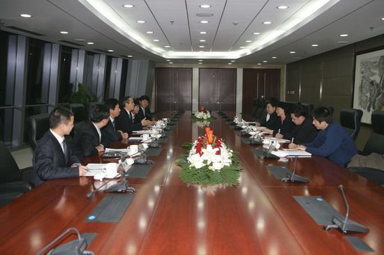 On December 15, President Huang Tianwen met with the delegation led by Wang Lihong, President of China Development Bank Hebei Branch.President Huang expressed his admiration on CDB actively support enterprises development. Sinosteel has kept long-term strategic cooperation relationship with CDB, the cooperation between two parties are making good progress. President Wang also said facing the severe economic situation; Hebei Branch will exert its advantages on long-term credit, big line; provide syndicated credit for related construction projects, so as to promote the business development of Sinosteel.