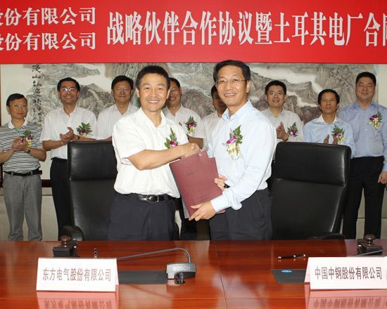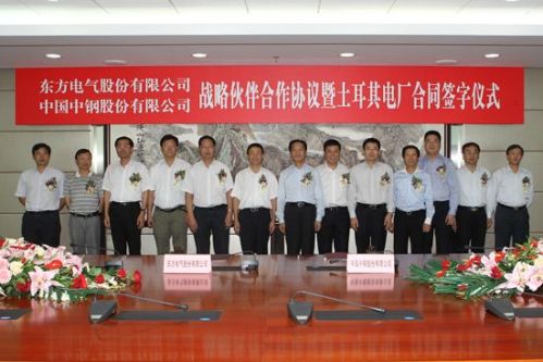 To intensify the strategic cooperation with other state-owned enterprises, and tap the potentials for future development, the executives of Sinosteel Corporation Limited and Dongfang Electric gathered together in Sinosteel headquarter on August 10th. Mr. Jia Baojun, Chairman of Sinosteel Corporation Limited and Mr. Si Zefu, Chairman of Dongfang Electric signed strategic cooperation agreement on behalf of the two companies. And Vice-president Mr. Zhang Jinghua of Sinosteel and Vice-president Zhang Zhiying signed contract for the Turkey project.