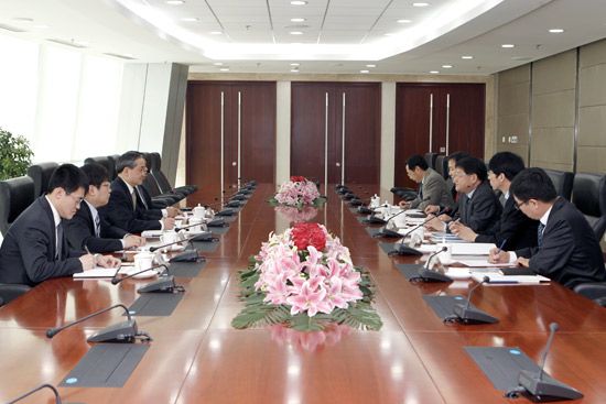 On the morning of February 8, Mr. Huang Tianwen, Chairman of Sinosteel Corporation Ltd. met with Mr. Pei Xuanling, Vice Director of STX PANOCEAN and his delegation in Sinosteel HQ, and the two sides exchanged views on issues of common concern.