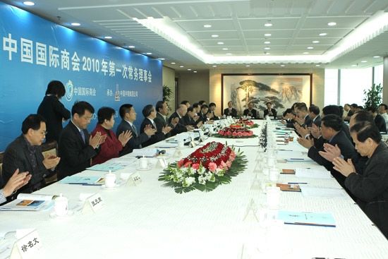 Mar. 19th, CCOIC 2010 1st Council was held at Sinosteel headquarters. The meeting was organized by China Chamber of International Commerce and co-organized by Sinosteel. Chairman Huang Tianwen hosted the meeting. Mr. Chenyuan, chairman of National Development Bank, Mr. Li Ruogu, president of China Export-Import Bank etc. and more than 40 representatives attended the meeting.