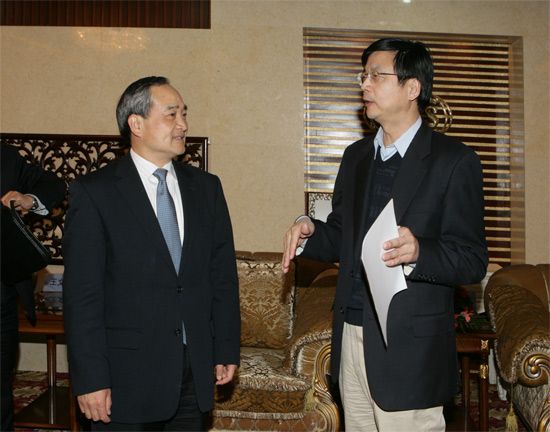 President Huang Talking with Chairman Liu Beixian