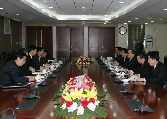 On the morning of March 18, President Huang Tianwen Meeting with Vice Chairman of China Enterprise Confederation and China Enterprise Directors Association Li Jianming in Sinosteel headquarter. President Huang introduced Sinosteel’s reform development in recent years, expressed that Sinosteel is under the guidance of China Enterprise Confederation and China Enterprise Directors Association, improve and perfect the managing work of enterprise, so as to realize sound and fast development. Vice Chairman Li Jianming said that the successes of Sinosteel made people’s focus attention opon its speed up the strategic transformation, characteristic development of industrial service, afterward the experiences behind have be summarized. China Enterprise Confederation and China Enterprise Directors Association would like to exert its advantages, summarized and spread the experiences made by Sinosteel, meanwhile promote Sinosteel’s development, also offer useful reference for other enterprises.Before the meeting, the delegation visited Sinosteel exhibition room.