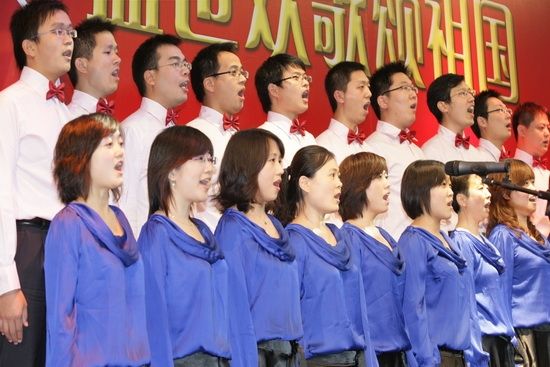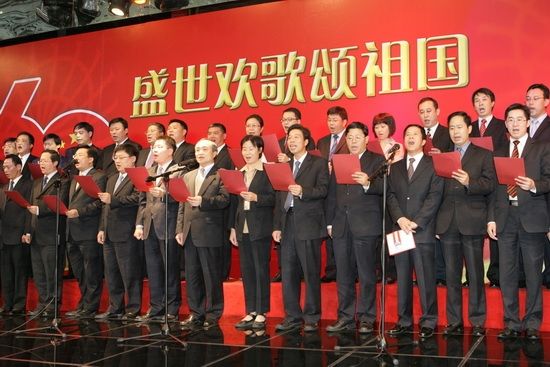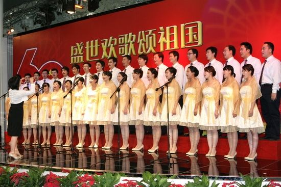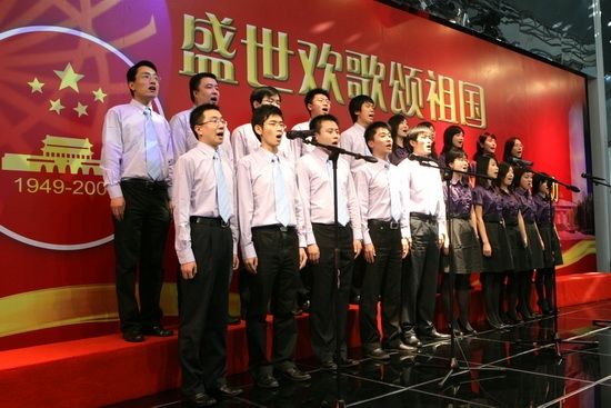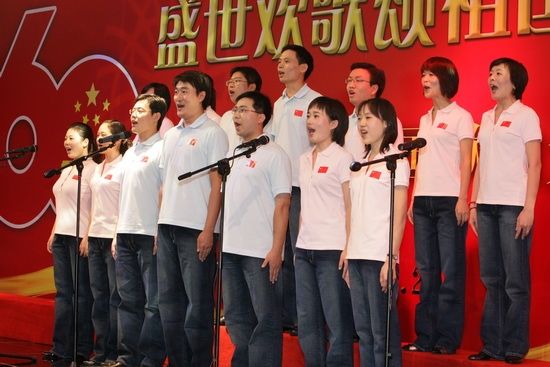 The executives of Sinosteel Corporation and Sinosteel Corporation Limited, namely Mr. Huang Tianwen, Yang Yaqing, Shao Dianxiang, Liu Andong, Gong Jingsheng, Wang Wenjun, Wu Yongsheng and Li Kejie joined the singing, celebrating the 60th anniversary of the founding of PRC.