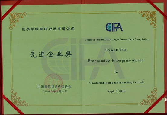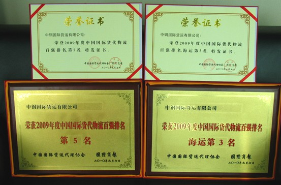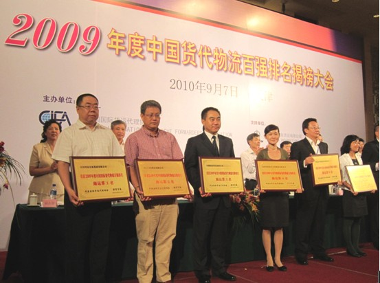 Sep. 6-7, 2010, the “Cross-strait Industrial Logistics Conference for Cooperation and Exchange” jointly organized by China International Freight Forwarders Association, International Business Daily, and Taipei Computer union was held in Tianjin. The conference released the rankings of 2009 in terms of “China International Freight Forwarding Logistics Top 100” and “China International Marine Freight Forwarding Logistics Top 50”. And Sinosteel Shipping and Forwarding Co. Ltd honorably renewed its record this year to the 5th of 2009 “China International Freight Forwarding Logistics Top 100”, and the 3rd of “China International Marine Freight Forwarding Logistics Top 50”. The award recognizes innovation and enhanced services of the companies in recent years, as well as recognizes their peer role models played which promoted the development of Chinese forwarding and logistics industry.