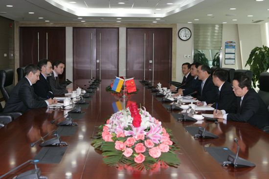 President Huang Tianwen warm welcomed to the delegation and expressed his sincere gratitude to the support and help from the Embassy. China has kept close contacts on economy and commerce with Ukraine, broad spaces and prospects for cooperation, which have strong complementarity on mining development and metallurgical import and export etc. Sinosteel would like to keep long-term on the communication and contact with Embassy of Ukraine to China, promote mutual economic and commercial cooperation, so as to realize mutual benefit and win-win outcome.