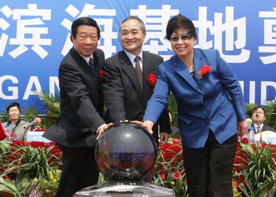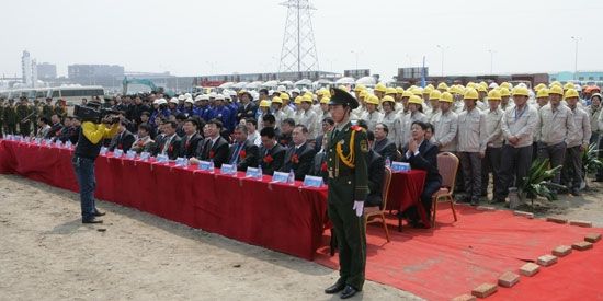 At 11 am, April 28th, the foundation stone laying ceremony of Sinosteel Binhai Base project was held successfully in Binhai Development Districe, Changzhou City, Hebei province, marking a milestone development for Sinosteel Binhai Base project. President Huang Tianwen, Secretary Zhang Hanguang, vice-governor Sun Shibin of Hebei province, Deputy Party Secretary of Changzhou Municipality Zhang Yu, deputy-managing director of Binhai Development District Managing Committee Yin Enyuan attended the ceremony, and Sinosteel’s senior executives namely Mr. Jiang Hong, Mr. Li Zhimin, Mrs. Yang Yaqing, Mr. Shao Dianxiang, Mr. Liu Andong, Mr. Li Yi, Mr. Gong Jingsheng, Mr. Wang Wenjun, Mr. Wu Yongsheng, Mr. Li Kejie together witnessed the significant moment of Changzhou Binhai Development District. A total number of almost 1300 leaders, journalists etc. cerebrated the ceremony together.