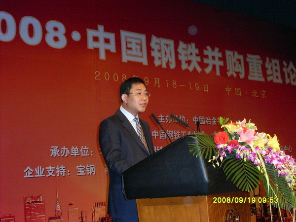 Form 18th-19th September, sponsored by China Metallurgy Newspaper Office, China Iron & Steel Mergers and Acquisitions Forum 2008 held in Beijing, By invitation, Vice President Li Zhimin attended it and delivered a keynote speech.This forum is supported and guided by SASAC, Commerce of PRC, DRC, CISA; which attracted a large number of domestic iron & steel industrial enterprises and related organizations participated on it. Heads of SASAC and other government organizations; Baosteel, WISCO, Sinosteel, Hebei Steel, Shandong Steel, Arcelor Mittal also delivered their speeches one after another on the forum.