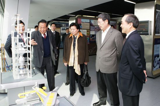 Minister of National Association of Industry and Commerce Economy Ministry Mrs. Ouyang Xiaoming, Deputy Secretary-General of the Commerce for Metallurgy Industry Mr. Geng Bingxi, director of President’s Office Mr. He Xuewen, and vice-director of Minister of National Association of Industry and Commerce Economy Ministry Mrs. Wang Yi also accompanied Chairman Huang Mengfu to Sinosteel.