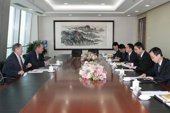 Jan. 6, Mr. Wu Yongsheng, vice-president of Sinosteel Corporation Limited met with Mr. Patrick Quirk, director of Australia Mantra Resources at Sinosteel headquarter.