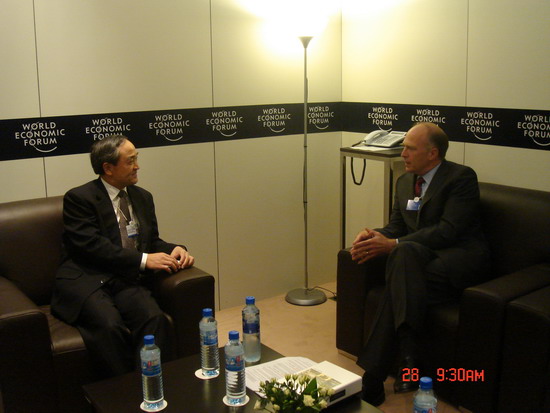During the meeting, Premier Wen Jiabao met with President Huang Tianwen and other representatives of the entrepreneurs; as the invitation of the organizing committee of the dialogue guests, he participated in the theme discussion of global growth companies to global corporate citizen.