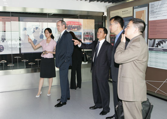 Before the meeting, accompanied by heads of Changjiang Office, the delegation visited Sinosteel exhibition room.